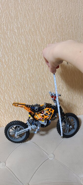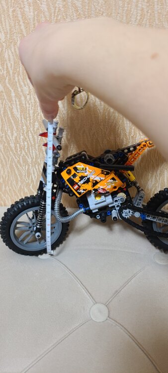 Максимальная высота мотоцикла 23 см, длина 30 см.