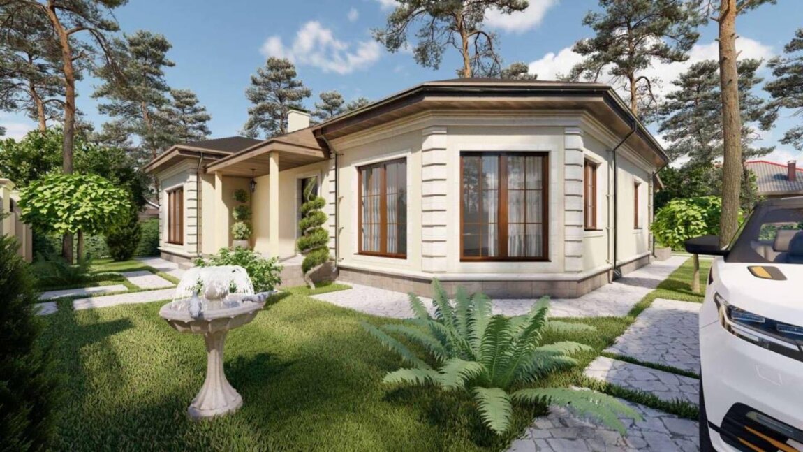 16935 В продаже одноэтажный дом на 5 сотках в закрытом, охраняемом коттеджном городке.Три спальни, кухня-столовая, гостиная, гардеробная. Есть большой холл и тамбур. Котельная в доме. Высокие потолки. Межкомнатные стены - 20 см, есть утепление базальтовой ватой. Терасса выложена плиткой. Крыша из натуральной черепицы, фасад травертин. Газон во дворе, забор, роллетные ворота. Есть гараж.Все коммуникации подведены. Есть возможность построить дом с бомбоубежищем по израильскому типу. Есть большой парк, детские площадки, ночное освещение.