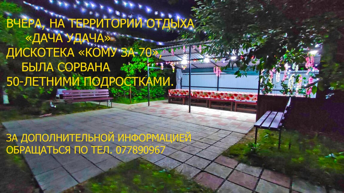 Сдаётся светлая, просторная 1-комн. квартира, ПОСУТОЧНО, почасово, понедельно в центре Бендер. Квартира меблированная, есть всё, что необходимо для проживания: горячая вода, WI-FI, TV. В квартире евроремонт, приятная комфортная обстановка, чисто, уютно, тепло. Есть балкон. На кухне вся бытовая техника. Рядом кафе, магазины, супермаркет, рынки, аптеки, остановки общественного транспорта. В шаговой доступности автовокзал, Бендерская крепость. Квартира не предназначена для мероприятий. Чтобы собраться с друзьями, родными предлагаю беседку на территории Дача Удача. Вместимость беседки до 30 человек. Есть все условия для отдыха, мангал, дрова, вода, хорошее освещение, туалет, розетки, холодильники, колонка... Территории огороженная, зелёная, ухоженная. Находится возле нижней Праги в частном секторе. Ул. Зои Космодемьянской 20. Звоните. На номере +37377890967 есть вайбер, ватсап, телеграмм.