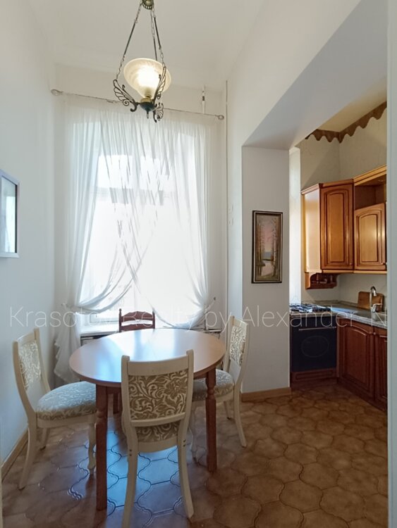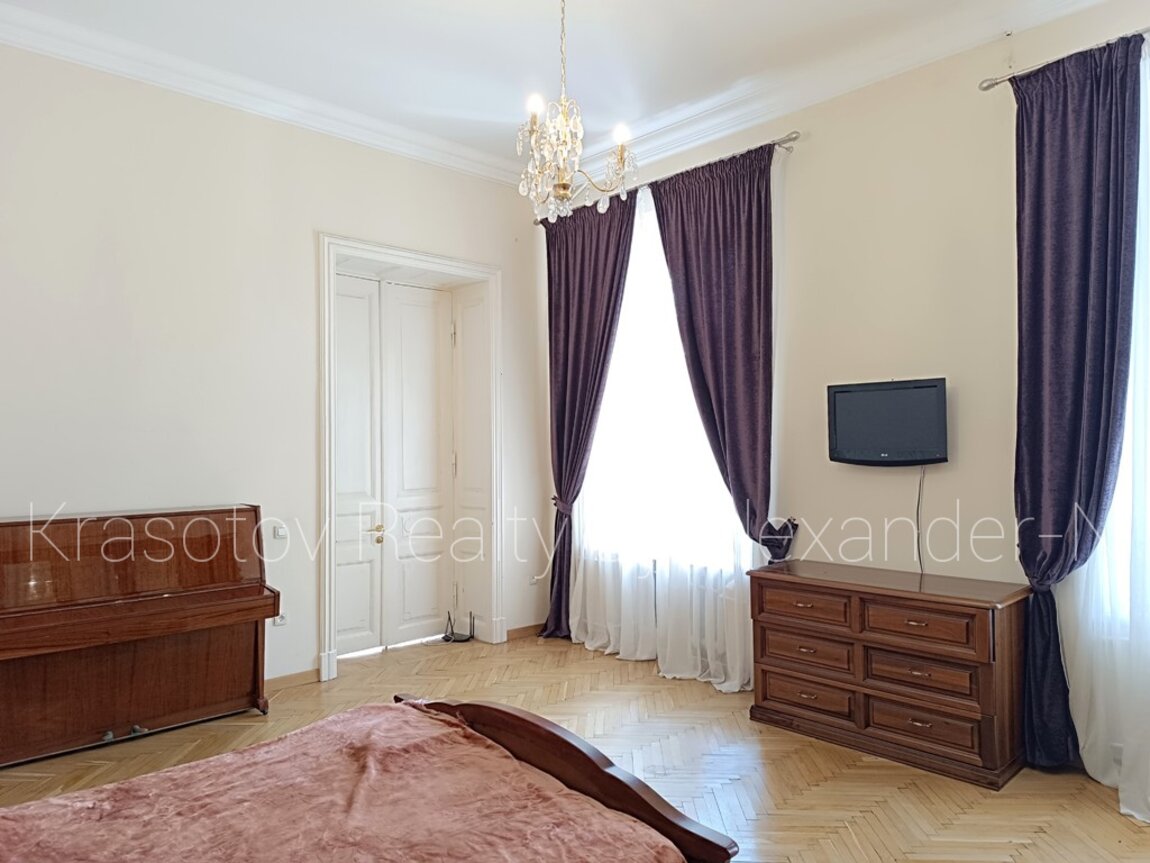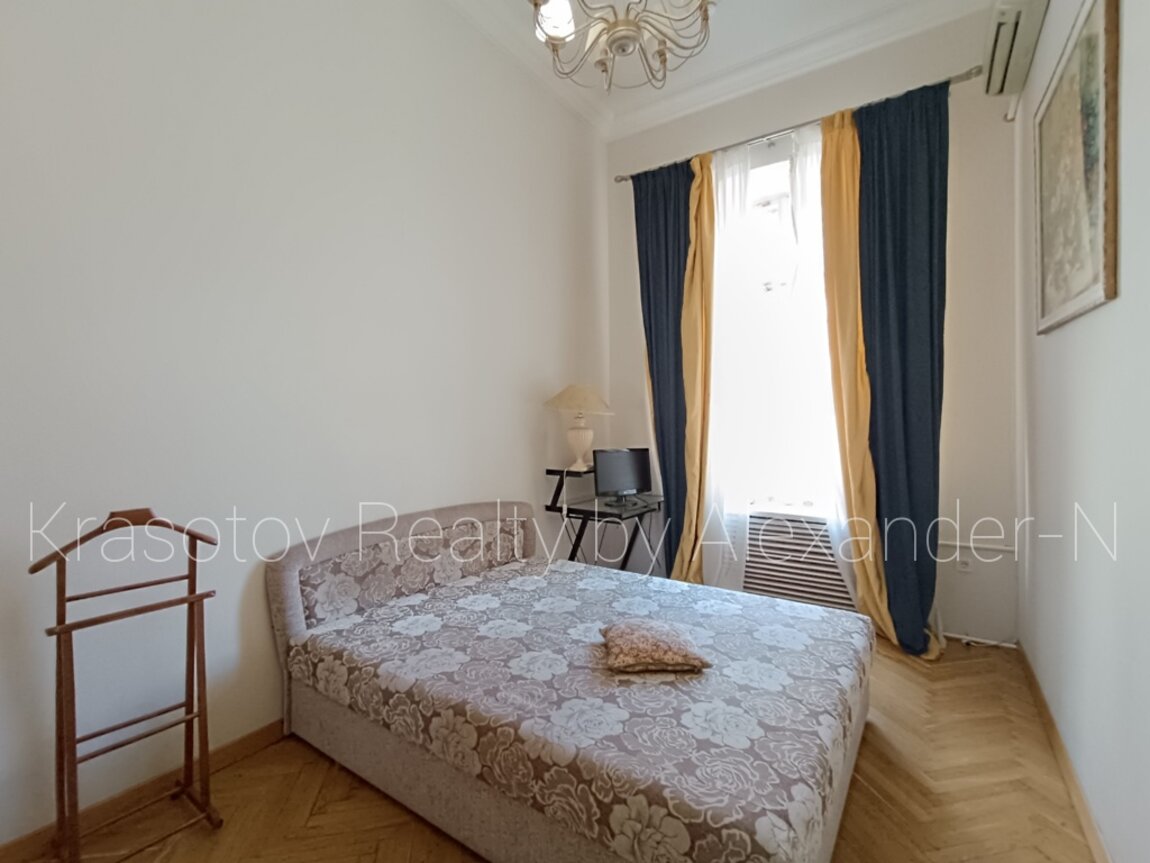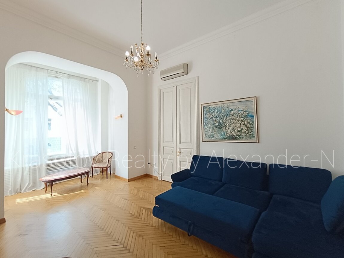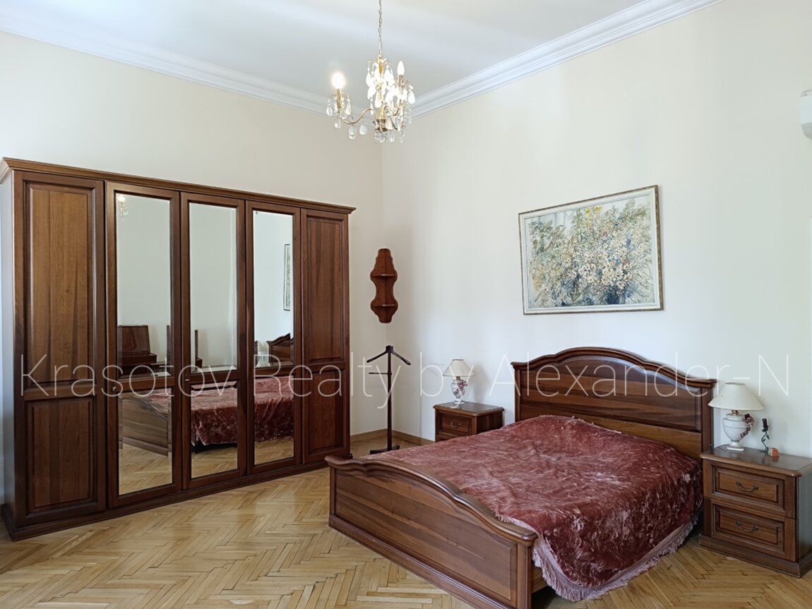 Пушкинская / Ланжероновская, сдам квартиру, расположенную на втором этаже шикарного трехэтажного старинного дома-памятника архитектуры, 120/78/10 кв. м, четыре смежно-раздельные комнаты (три отдельных спальни и одна проходная), удобная кухня-столовая, большая ванная комната с ванной и биде, оригинальный угловой балкон в тихий уютный двор, кладовая, высота потолков 4,2 метра, охранная сигнализация, практически полностью укомплектована мебелью и бытовой техникой, двуспальные кровати в двух спальнях и раскладной диван, шкафы, кондиционеры, бойлер, стиральная машина, телевизоры, Wi-Fi, просторная и светлая квартира в потрясающей локации в самом туристическом и внесенном в охранный список ЮНЕСКО уникальном центре Одессы возле Дерибасовской, Оперного и театра, Археологического музея и Приморского бульвара!