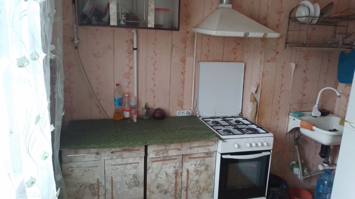 6 этаже/10-ти этажного дома, комната 18 м., кухня 9 м., состояние очень простое, есть необходимая обычная мебель (кухонная мебель + обеденный стол