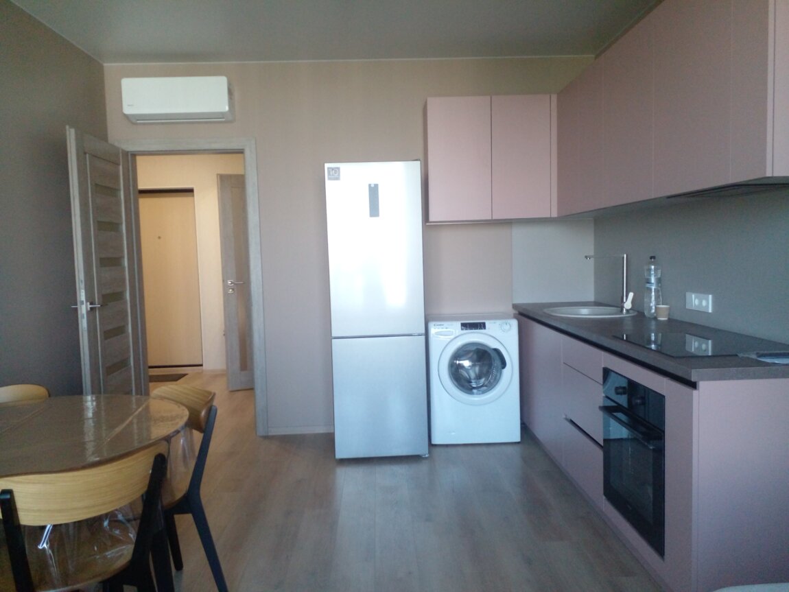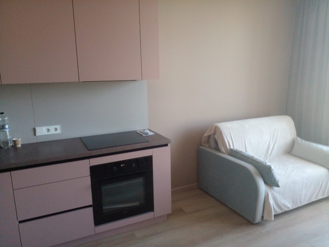 ЖК Модерн / 6 станция Фонтана. Современный жилой комплекс бизнес - класса с закрытой, благоустроенной территорией. Просторная кухня - студия пл. 19.5 кв. м. с мебелью, диваном, бытовой техникой. Отдельная спальня пл. 19 кв. м с кроватью и вместительным шкафом. Из спальни - выход на балкон. Два кондиционера. Телевизор, интернет. Торг!