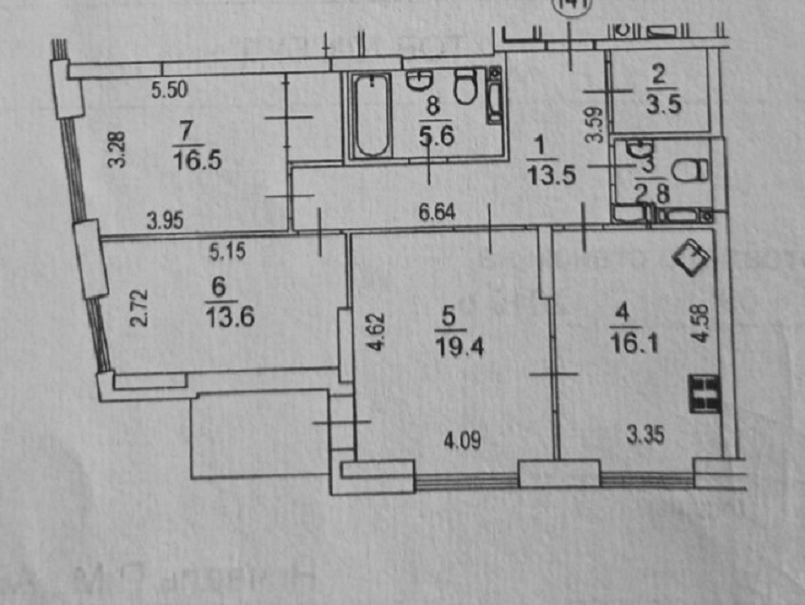 Количество комнат3 комнаты