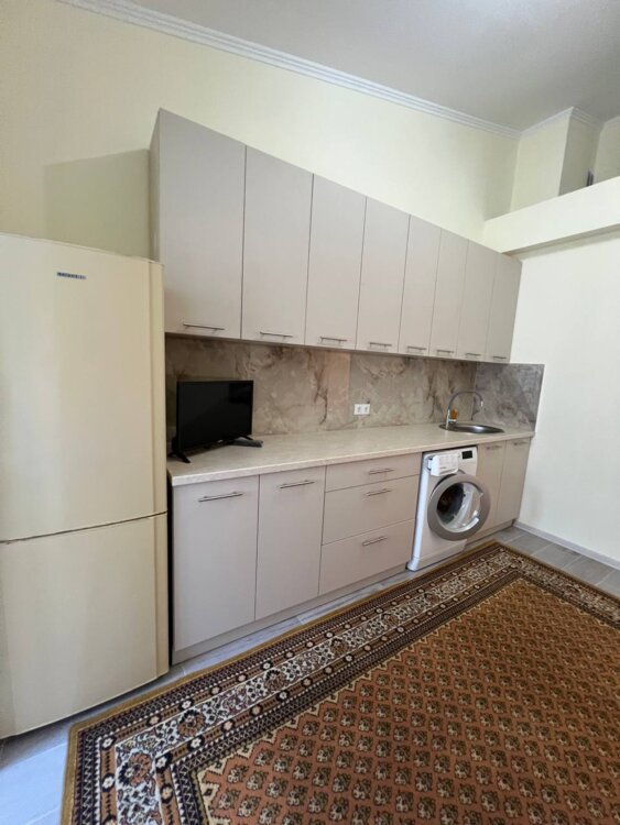 Есть необходимая мебель, холодильник, новая стиральная машина, газовая плита с духовым шкафом, телевизор.