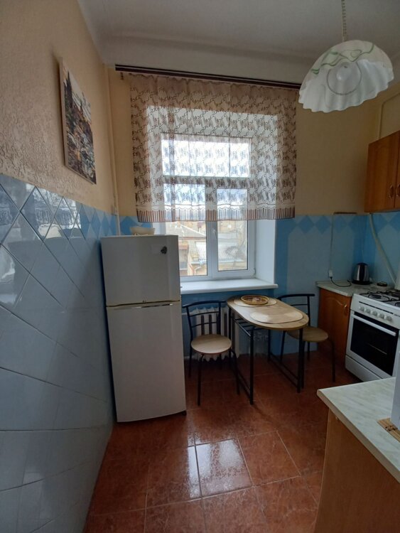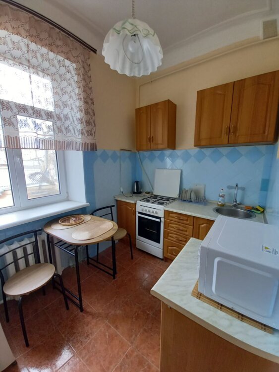 Сдам на длительно 1-комнатную квартиру в центре города на ул. Базарная угол Пушкинская, этаж 3/3, сталинка, общ. 36 кв. м, отопление центральное, с/у совмещен (душевая кабина), укомплектована мебелью и бытовой техникой, без животных 10000 грн. /месяц.