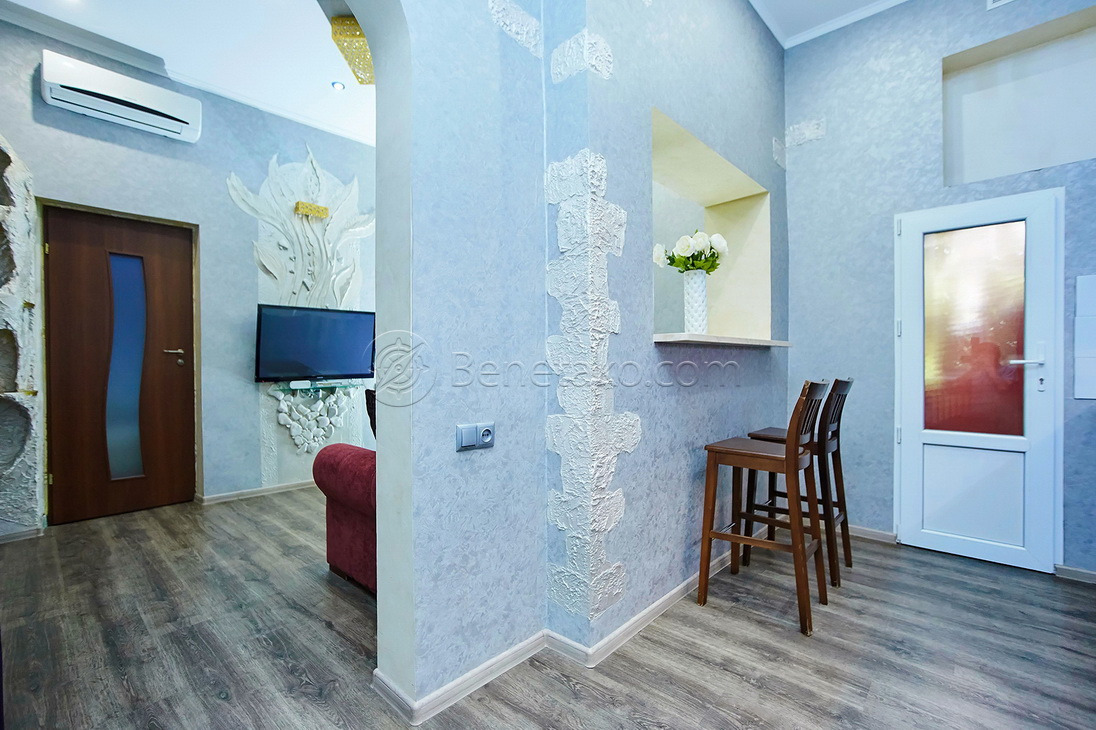 Код: 159. ПОМЕСЯЧНО АРЕНДА АКТУАЛЬНА В ПЕРИОД С 01.09 ДО 30.05 (в летний сезон сдается посуточно от 2-х суток, раннее бронирование от 5-и суток и более). Квартира с балконом и видом на город в центре Одессы, ул. Ланжероновская, 21, 2/2 эт. дома, общая площадь 50 кв. м. Необычный эксклюзивный ремонт, кухня-студия и спальня, (зона гостиной с раскладным диваном, спальня с кроватью) всего спальных мест – 4 (2+2), раздельный санузел с душем. Квартира оснащена всей необходимой мебелью и бытовой техникой: кондиционер, ТВ (кабельное), WI-FI интернет. Рядом Оперный театр, улица Дерибасовская, Приморский бульвар, «Морвокзал». Аренда от 1-го месяца и более. Стоимость может варьироваться в зависимости от срока аренды. Перед просмотром уточните наличие и детали по VIBER, WHATSAPP или TELEGRAM, указав «КОД» из объявления. КОМИССИЯ ЗА УСЛУГИ РИЭЛТОРА - 50% от месячной аренды (разовая оплата при оформлении договора).