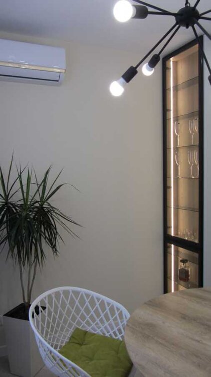 В первой комнате: диван, стол, кресло, телевизор "Samsung", столик, тумба под телевизор, кондиционер " CooperHunter".