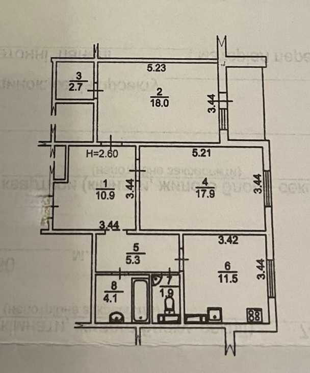 Высота потолков260 см