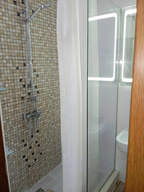 Техника: WiFi, домофон, санфаянс с инсталляцией, тропический душ, светильники бра, рольставни, шторы, жалюзи, люстры, телевизор в спальне, телевизор на кухне, бойлер основной и бойлер на кухне, кондиционер, электрокамин, микроволновая печь, холодильник, стиральная машина, пылесос, встроенные электроплита и электрический духовой шкаф.