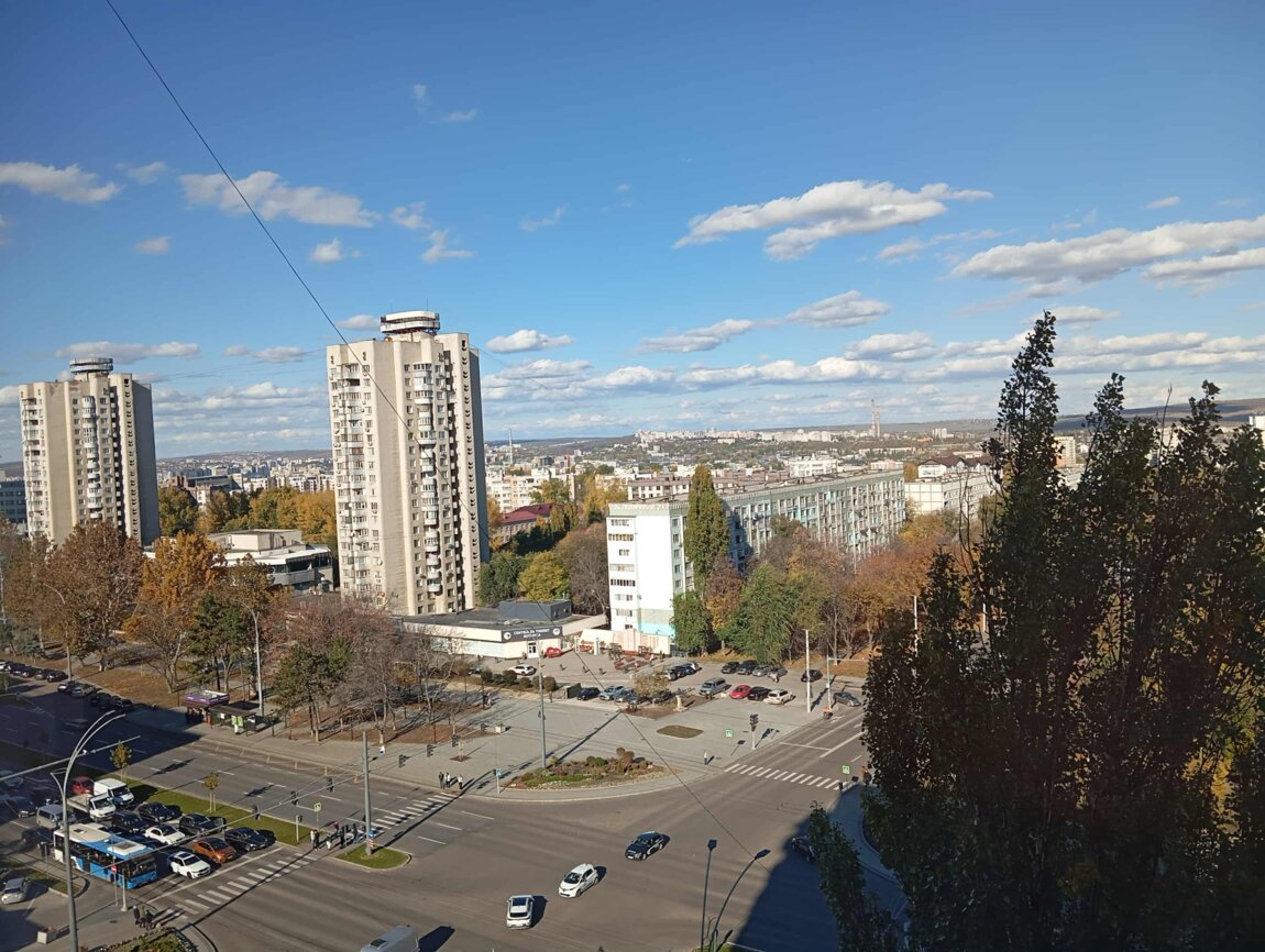 Панорамный вид из окна на дневной и вечерний Кишинёв. Центральное отопление.