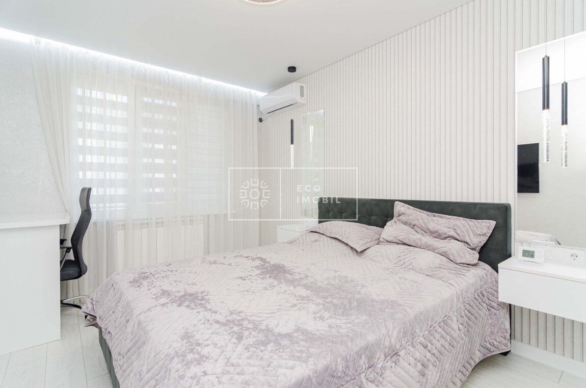 Spre închiriere apartament cu 3 odăi, bloc nou, amplasat în sect. Buiucani, str. Ion Buzdugan. Imobilul, cu o suprafață de 58 m.p., este poziționat la etajul 8 din 10. Caracteristici: design individual, dispune de reparație calitativă, obiecte sanitare instalate, dotat cu mobilă și tehnică de uz casnic, finisaje de calitate superioară încălzire autonomă, aparat de aer condiționat. Compartimentare: 2 odăi separate, living comasat cu bucătărie, 2 blocuri sanitare, balcon. Blocul locativ dispune de pază și supraveghere video 24/24, teren de joacă, zonă de agrement. Curtea blocului este de tip închis, dispune de pază vie. În imediată apropiere se găsesc numeroase puncte sociale și comerciale, supermarket, farmacie, bancă, grădiniță, sală de fitness, parc etc. Acces facil la transport public în orice direcție a orașului. Apartamentul este disponibil doar pentru perioadă scurtă. Сдаётся в аренду 3-комнатная квартира в новом доме, расположенном в секторе Буюканы, на ул. Ион Буздуган. Недвижимость площадью 58 кв.м находится на 8 этаже из 10. Характеристики: Индивидуальный дизайн, качественный ремонт, установлена сантехника, квартира укомплектована мебелью и бытовой техникой, отделка выполнена из материалов высокого качества. Автономное отопление, кондиционер. Планировка: 2 отдельные спальни, гостиная, совмещённая с кухней, 2 санузла, балкон. Жилой комплекс имеет круглосуточную охрану и видеонаблюдение, закрытый двор с охраной, детскую площадку и зону отдыха. В непосредственной ...