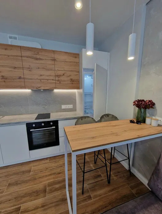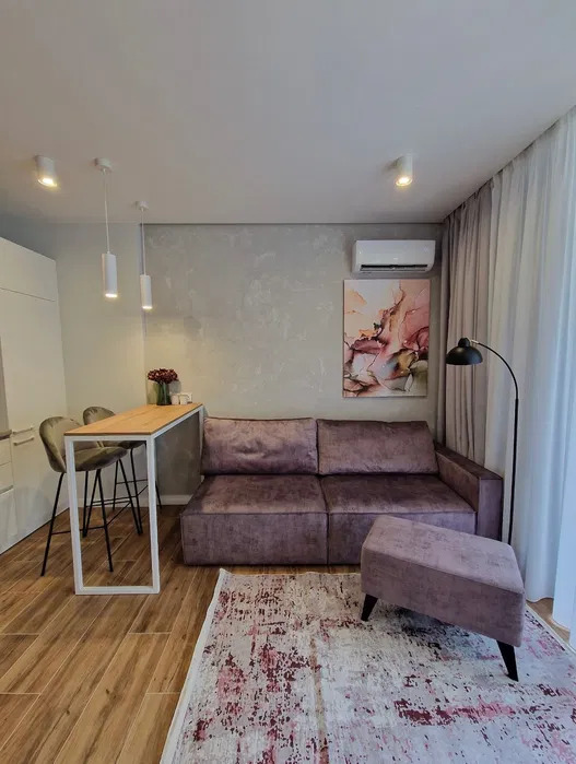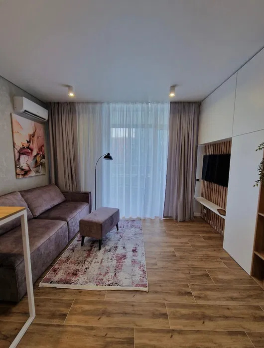 В квартирі виконаний якісний ремонт. Зручне планування: кухня-вітальня з вбудованою технікою, підігрівом полів, кондиціонером з виходом на великий зручний балкон який облаштований теплою підлогою; окрема спальня; суміжний санвузол
