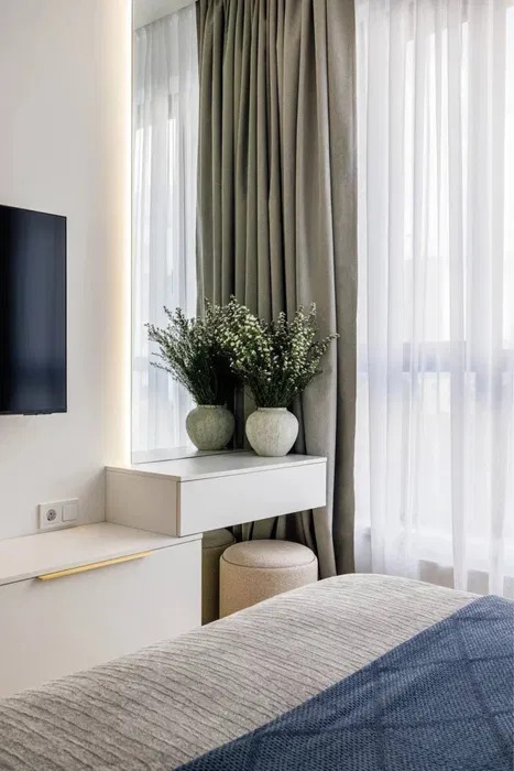 У квартирі виконаний авторський ремонт, а також комплектація новими меблями та побутовою технікою: варочна поверхня, духова шафа, плита, прально-сушильна, посудомийна машини, бойлер, кавова машина, Smart TV, пилосос, посуд. Тепла підлога, видовий балкон. Функціональне планування, грамотно оптимізований простір: передпокій, кухня - вітальня, окрема спальня з двоспальним ліжком, суміжний санвузол з ванною.