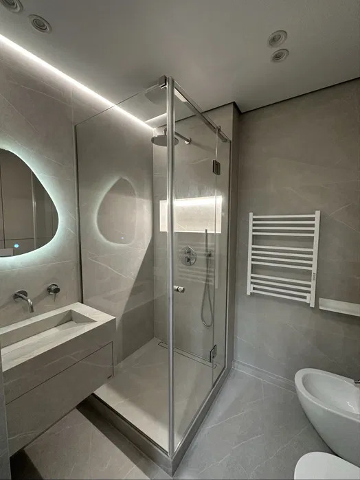 • Сучасна ванна кімната з душовою, умивальником та туалетом