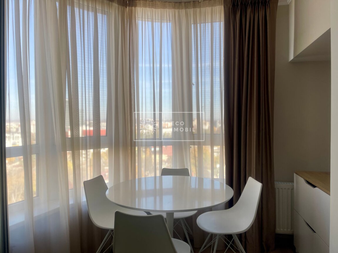 Vă propunem spre chirie apartament cu o cameră și living, într-un bloc nou, situat în sectorul Centru, pe strada Nicolae Testemițanu. Imobilul, cu o suprafață de 43 m.p., este poziționat la etajul 7 din 15. Caracteristici: design individual, reparație calitativă, obiecte sanitare instalate, mobilier realizat la comandă, dotat cu tehnică de uz casnic, sistem de aer condiționat, compartimentare perfectă, geamuri termopane, încălzire autonomă, priveliște panoramică. Compartimentare: dormitor, living combinat cu bucătăria, antreu, bloc sanitar, balcon, garderobă. Blocul locativ dispune de pază și supraveghere video 24/24, teren de joacă și zonă de agrement. În imediata apropiere se găsesc numeroase puncte sociale și comerciale: supermarket, farmacie, bancă, grădiniță, sală de fitness, universitate, colegiu, spital etc. Предлагается в аренду квартира с одной спальней и гостиной в новом доме, расположенном в секторе Центр, на улице Николае Тестемицану. Квартира площадью 43 кв.м находится на 7 этаже из 15. Характеристики: индивидуальный дизайн, качественный ремонт, установлена сантехника, мебель выполнена на заказ, оснащена бытовой техникой, система кондиционирования, удобная планировка, стеклопакеты, автономное отопление, панорамный вид. Планировка: спальня, гостиная, совмещённая с кухней, прихожая, санузел, балкон, гардеробная. Жилой комплекс оснащён охраной и видеонаблюдением 24/24, детской площадкой и зоной отдыха. В непосредственной близости расположены многочисленные ...