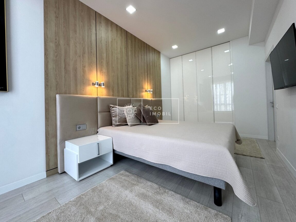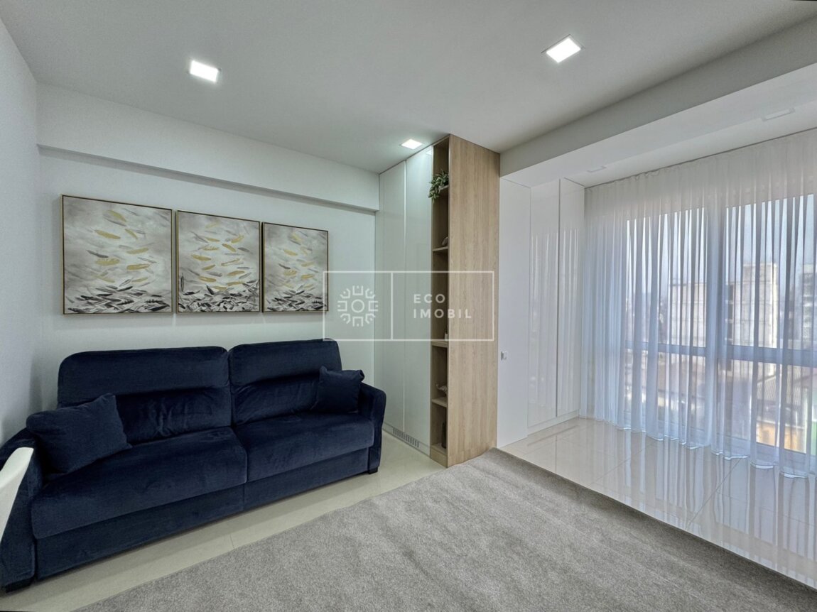 Vă propunem spre chirie apartament cu o odaie și living, bloc nou, amplasat în zona Ultracentrală, str. Tricolorului Imobilul, cu o suprafață de 60 m.p., este poziționat la etajul 3 din 9. Caracteristici: design individual, dispune de Euro reparație, obiecte sanitare instalate, dotat cu mobilă și tehnică de uz casnic, geamuri termopan, alarmă antiincendiară, încălzire autonomă. Compartimentare: un dormitor, living, bucătărie, bloc sanitar. Blocul locativ dispune de zonă de agrement, cameră de luat vederi și paza blocului și ograda de tip închis. În imediată apropiere se găsesc numeroase puncte sociale și comerciale, supermarket, farmacie, grădiniță, restaurante, parc, etc. Acces facil la transport public în orice direcție a orașului. Предлагаем в аренду квартиру с одной спальней и гостиной в новом доме, расположенном в ультрацентральной зоне, ул. Триколорулуй. Квартира общей площадью 60 кв.м., находится на 3 этаже из 9. Характеристики: индивидуальный дизайн, выполнен евроремонт, установлена сантехника, укомплектована мебелью и бытовой техникой, стеклопакеты, противопожарная сигнализация, автономное отопление. Планировка: спальня, гостиная, кухня, санузел. Жилой комплекс располагает зоной отдыха, видеонаблюдением, охраной и закрытым двором. В непосредственной близости находятся многочисленные социальные и коммерческие объекты: супермаркет, аптека, детский сад, рестораны, парк и т.д. Удобная транспортная развязка в любом направлении города.