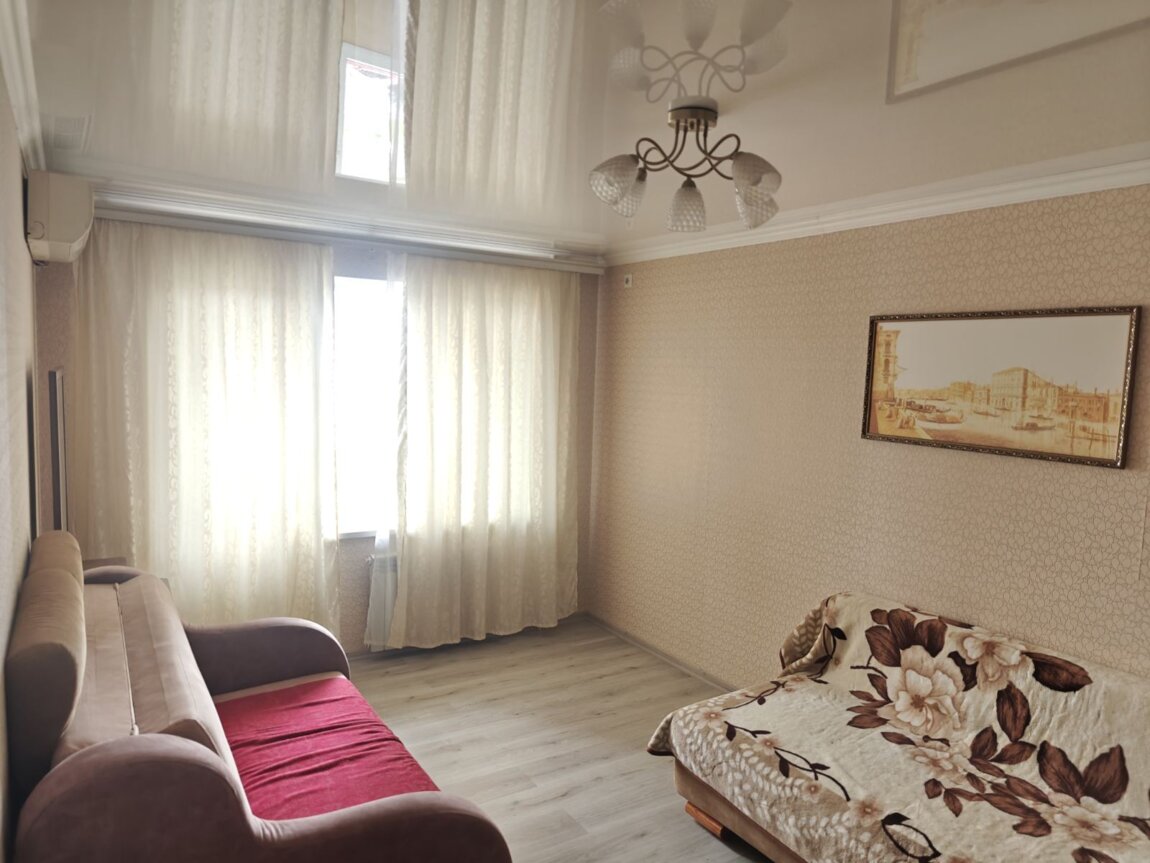 Однокомнатная квартира квартира с ремонтом чистая имеется вся необходимая мебель два дивана и бытовая техника кондиционер хороший район всё в шаговой доступности близость моря
