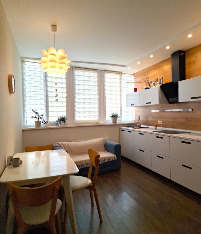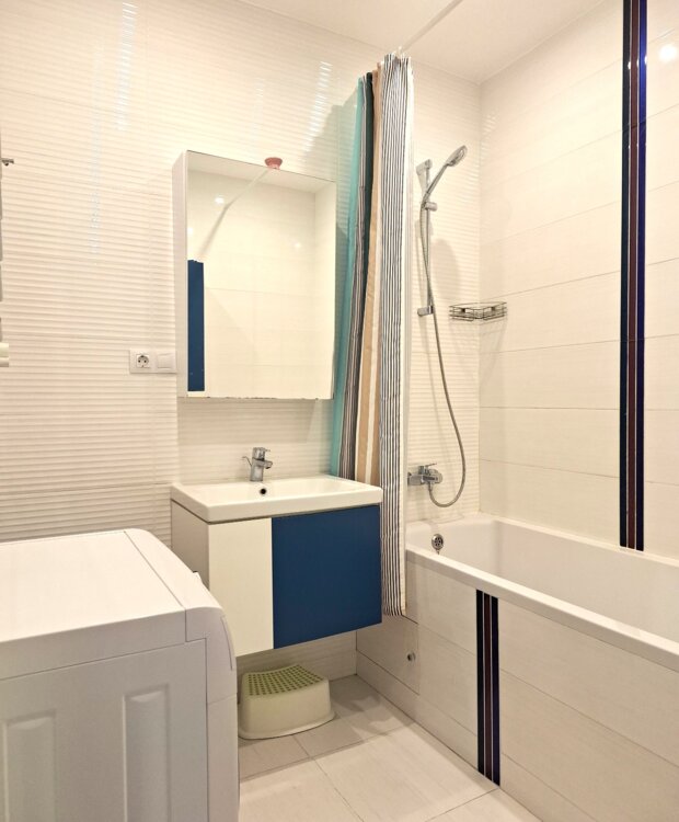 Квартира складається з 2-х роздільних кімнат-спальня з виходом на обладнану лоджію та дитячу, простора кухня-вітальня та роздільна з/в з ванною. Всі необхідні меблі, великі шафи для зберігання речей, вся побутова техніка, включаючи посудомийну машину. Загальна площа квартири 67 кв. м., розташована на 15-му поверсі/17-ти поверхового будинку. Дуже світла квартира, східна сторона. Квартира раніше не здавалася.