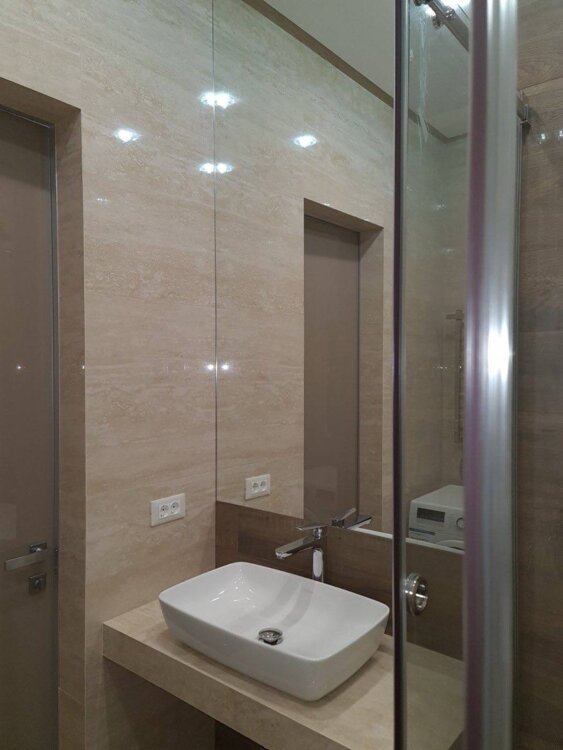 Дом кирпичный, толщина наружных стен 60 см. Современный ремонт из дорогих материалов итальянская половая плитка (электрика, кондиционирование, разводка труб, штукатурка, стяжка) на полу гостиной и спальни паркетная доска, подоконники мраморные, столешницы на кухне мраморные. Вся мебель итальянская.