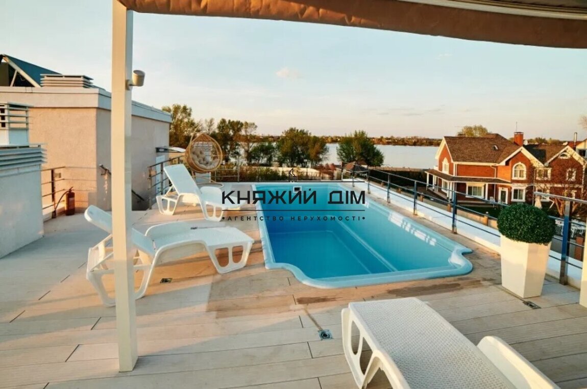 Без комиссии!!! Шикарный дом с выходом на Днепр.Конча-Заспа,Козин,о.Жуков. Отличный дом. Жуков остров 12 минут от центра Киева без пробок. С выходом на реку Днепр. 2 этажа, очень теплый. Площадь 210м2. Теплый пол, кондиционеры, тепловой насос и солнечные панели - экономный в плане коммуналки. В доме: каминный зал, столовая, 6 комнат, 3 санузла, римская парная, терраса и отапливаемый бассейн на крыше, терраса на балконе, пруд, барбекю на улице. Заповедная зона! Частный пляж. Пляжный комплекс Днепровская Ривьера 5 минут. Свой съезд к набережной. Закрытая территория - въезд по пропускам под шлагбаум. Сказочный, уникальный вид. В 2х минутах яхт-клуб «Маячок». Дом укомплектован мебелью и техникой. Ландшафтный дизайн. Автоматический полив. Видеонаблюдение. ТОЛЬКО ДЛЯ ДОЛГОСРОЧНЫХ АРЕНДАТОРОВ ОТ 12 МЕСЯЦЕВ С ПОСТОЯННЫМ ПРОЖИВАНИЕМ. Стоимость 6 500 у.е. код объекта № 138178