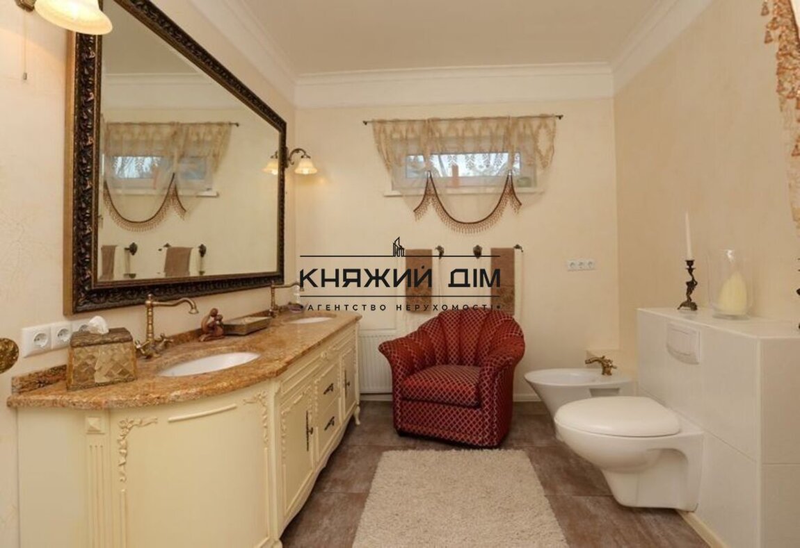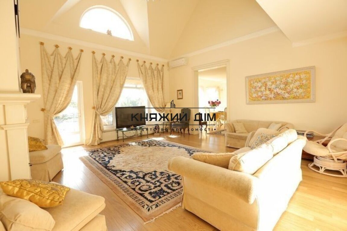 Сдается в аренду отличный 3-х этажный дом в с. Хлепча Васильковский р-н. Площадь дома 500 кв.м., расположенный на участке 75 соток. Рядом с лесом с выходом на реку Стугна, также на территории участка есть озеро. Всего в доме 7 спален, 4 санузла и 1 гостевой санузел. 1-й этаж: спальня с отдельной ванной и гардеробной. 2-й этаж: гостиная с камином, выход на террасу с видом на озеро, реку и лес, столовая и кухня. Главная спальня с собственной ванной, гардеробной и стиральной. 3-й этаж: 3 детские спальни, каждая из которых имеет гардеробную. В доме есть зал для отдыха "Восточный зал" площадью 45 кв.м. и игровой зал с теннисным столом 44,6 кв.м. Стоимость 5000 у.е. ТОРГ. Код объекта 139196