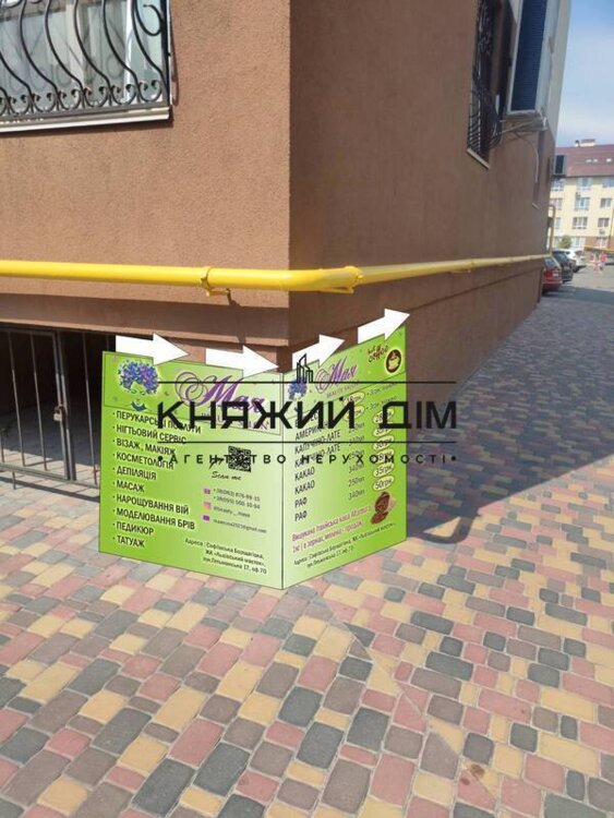 Оренда приміщення на Софіївській Борщагівці по вул.Гетьманській 17 в ЖК Львівській Маєток. Готове приміщення під Салон. Загальна площа 55м2, напівпідвальне приміщення. Окрема вхідна група. Є ресепшн та каво-машина. Центральна зала 29м2, складається з двух парехмахерських робочих місць, перше - манікюр/педикюр, друге-для візажу. М’який диван, крісло, шафа-купе, ТВ, кондиціонер, WI-FI (все професійне меблювання в наявності, душ-кабіна), с/в 4м2, є пральна машина. Накриття перед входом. Є наружна реклама з декількох позицій. Ціна оренди 25.000 грн + к.п. Код об’єкта:1581803