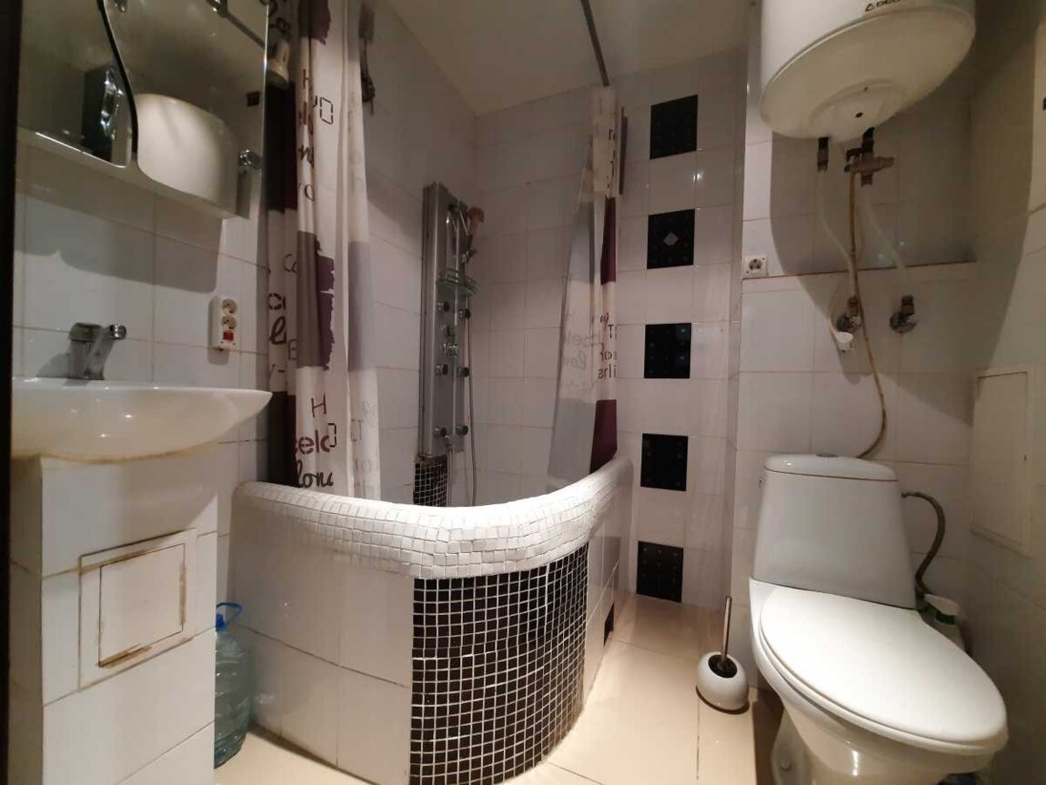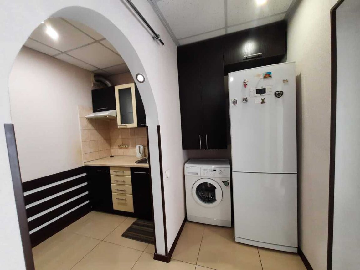 Основна кімната 18 м2, зона ресепшн-кухні 12 м2, санвузол, коридор 6 м2, кладовка 2.5 м2.