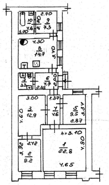 Жилая площадь54 м²