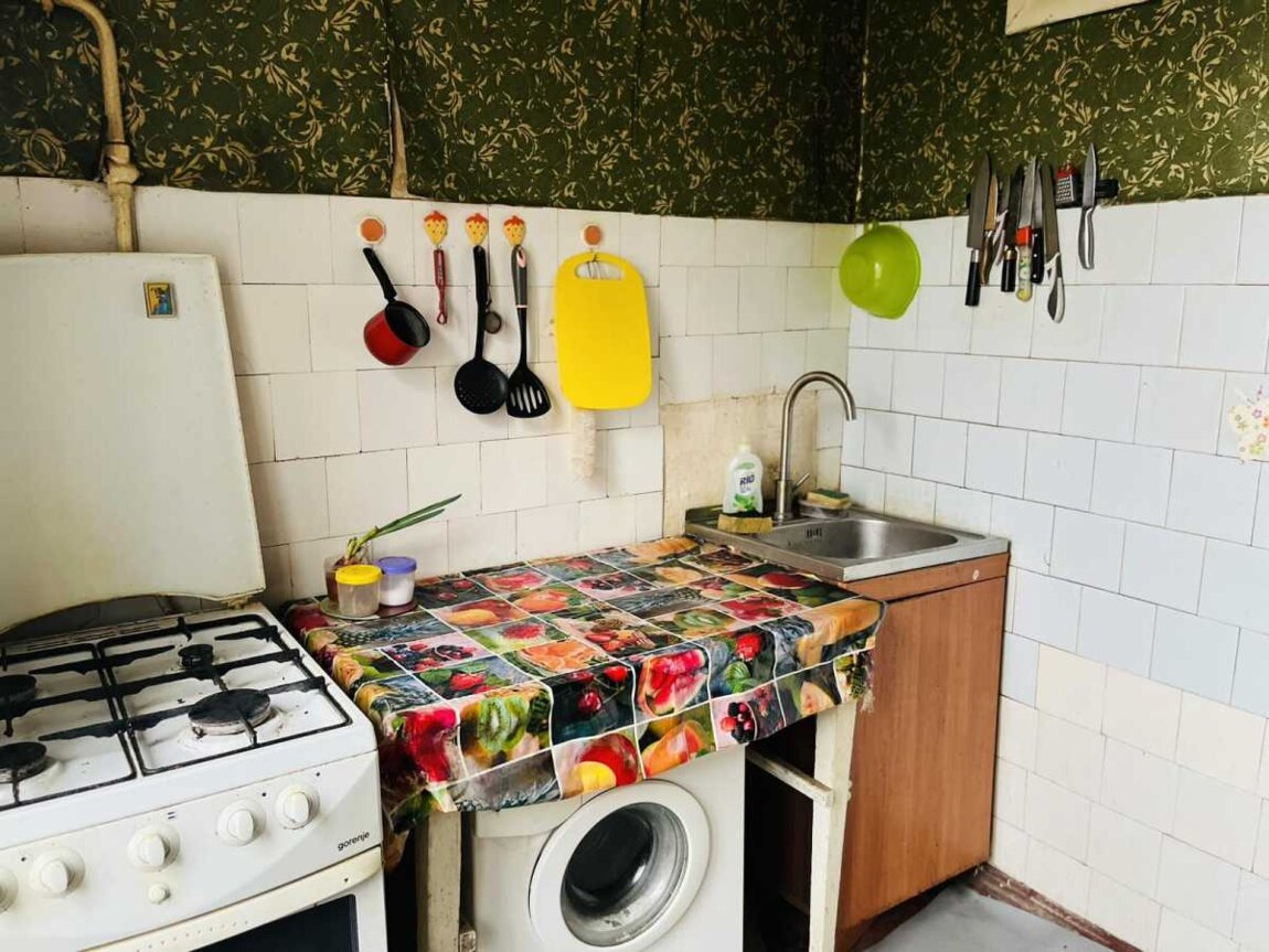 3-й поверх 5-ти поверхового будинку, хрущовка. Кімнати суміжні. Загальна площа 43,1 м2, житлова 28,) м2, кухня 5,4 м2, комора 2,4 м2, санвузол суміщений, балкон засклений, броньовані двері.