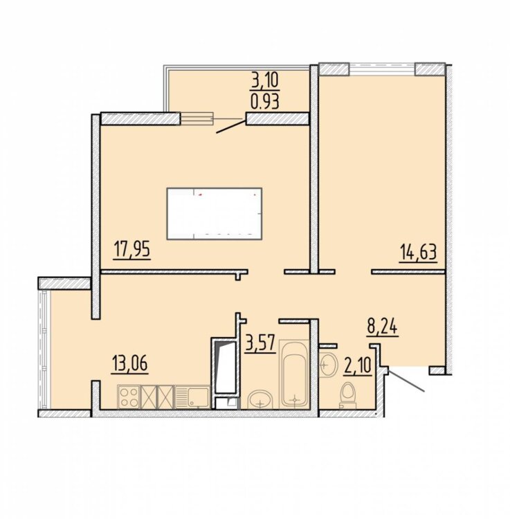 Количество комнат2 комнаты