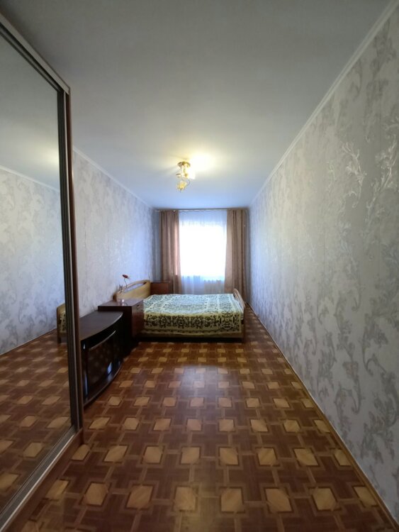 Квартира розташована на третьому поверсі п'ятиповерхового панельного будинку, у середині.