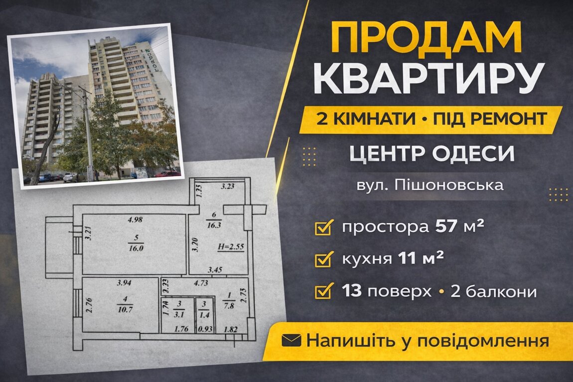Продається простора 2-кімнатна квартира площею 57 м2 на в самому серці Одеси — ідеальний вибір для комфортного життя чи вдалої інвестиції.