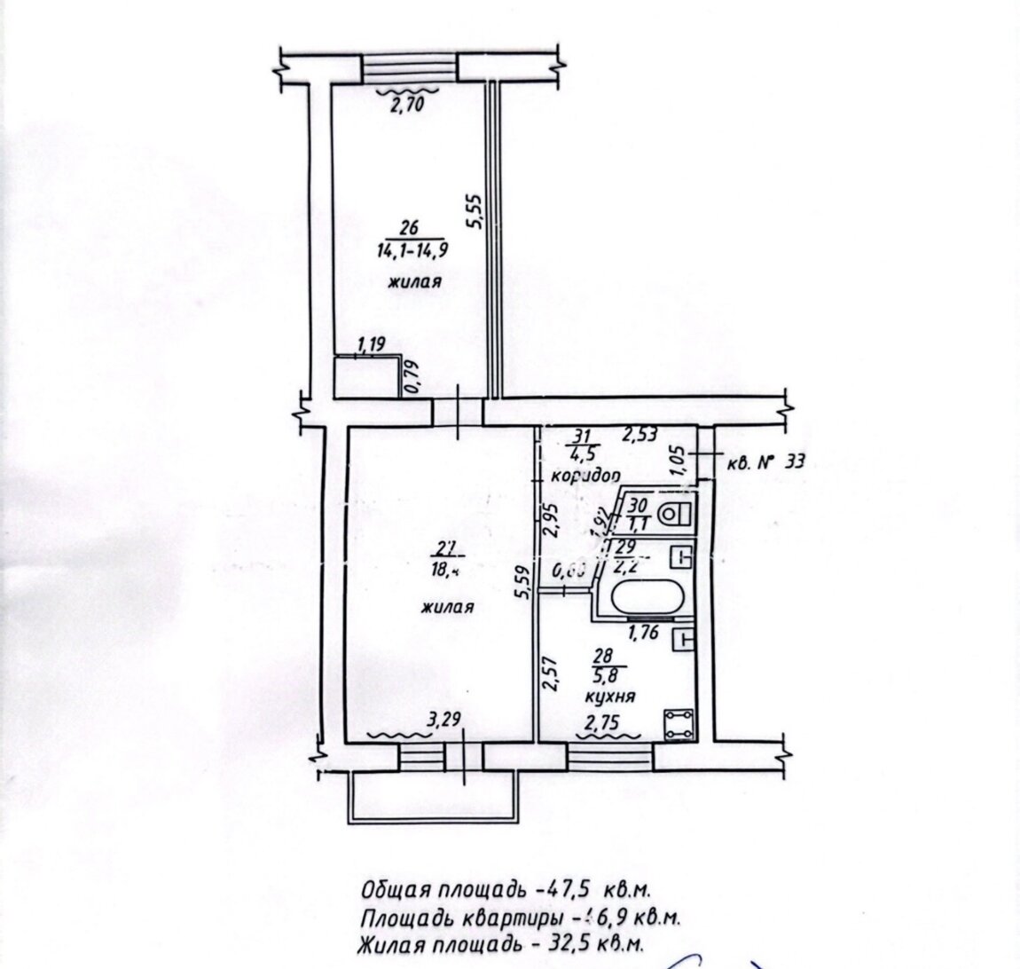Жилая площадь32.5 м²