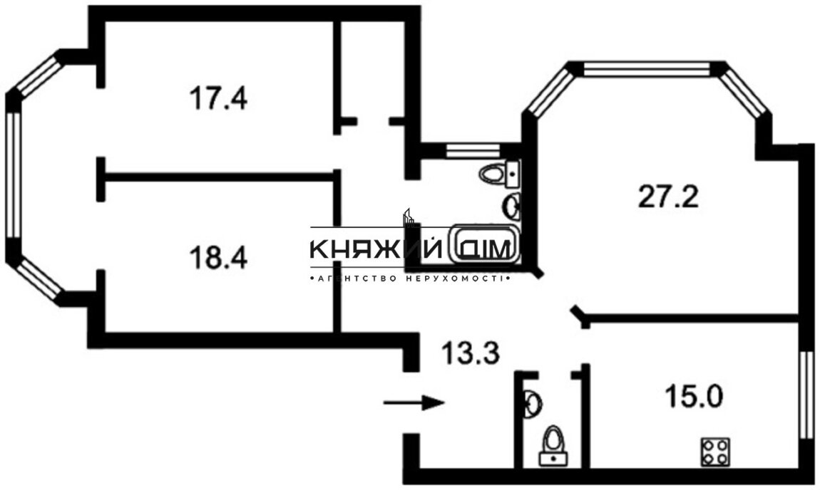 Жилая площадь63 м²