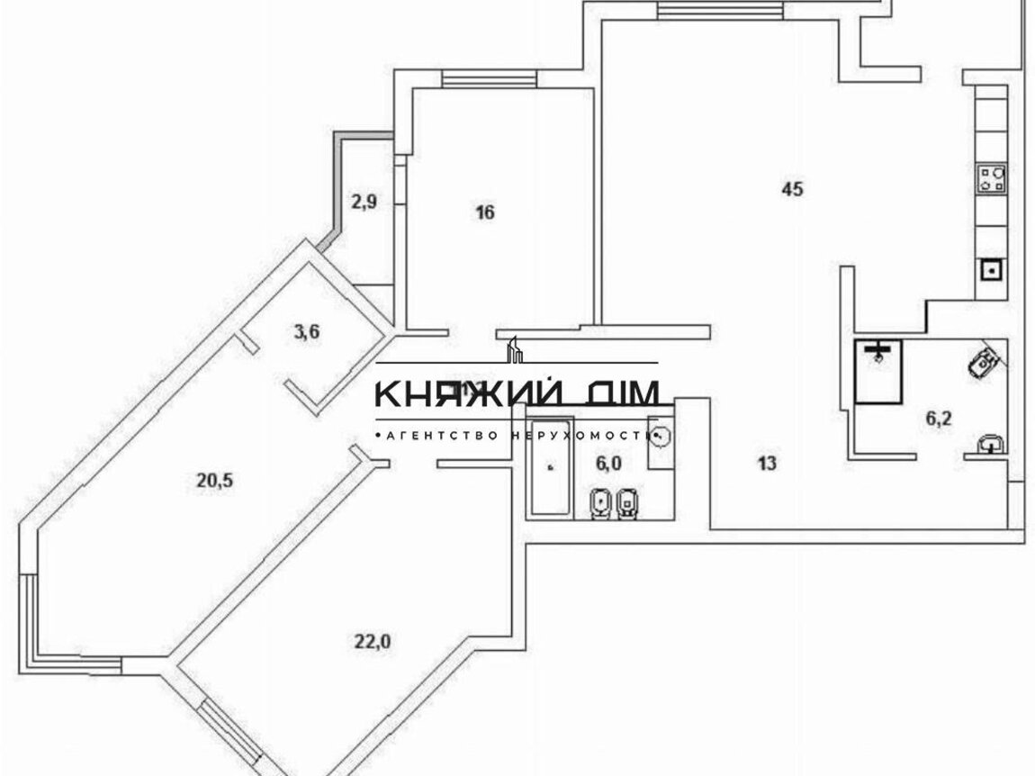 Площадь кухни45 м²