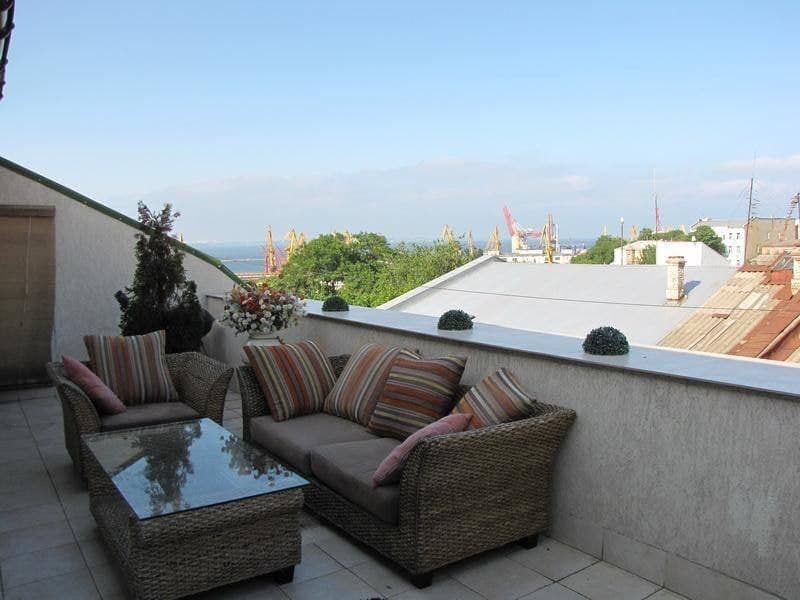 Предлагается к продаже шикарная квартира в самом центре Одессы на улице Дерибасовской, с террасой и видом на Одесский залив 3 просторные спальни, 2 санузла, большая гардеробная и терраса 30 кв. м с видом на море и мангалом.Интерьер выполнен в стиле Арт деко отличающийся роскошью, геометрическими формами и использованием дорогих и экзотичных материалов: ценные породы дерева, кожа, слоновая кость, перламутр. Яркими акцентами в интерьере являются люстры из хрусталя, блестящие поверхности, хром, стекло и большие зеркала. Квартира полностью меблирована и оснащена всей необходимой бытовой техникой. 3 парковочных места в закрытом дворе ID 27226