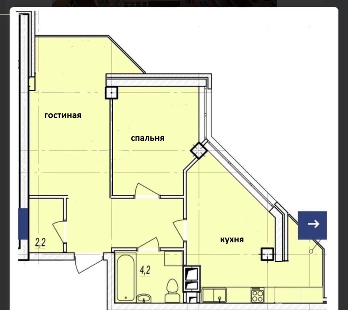 Количество комнат2 комнаты