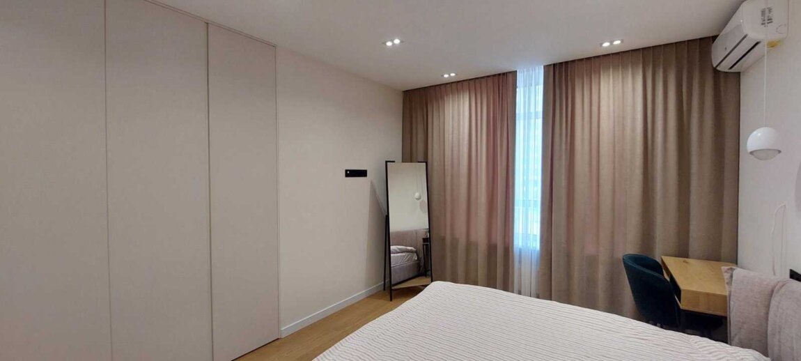 Квартира складаеться з кухні, вітальні та 2 окремих спалень, суміжний санвузол (з повнорозмірною ванною), простора вхідна група