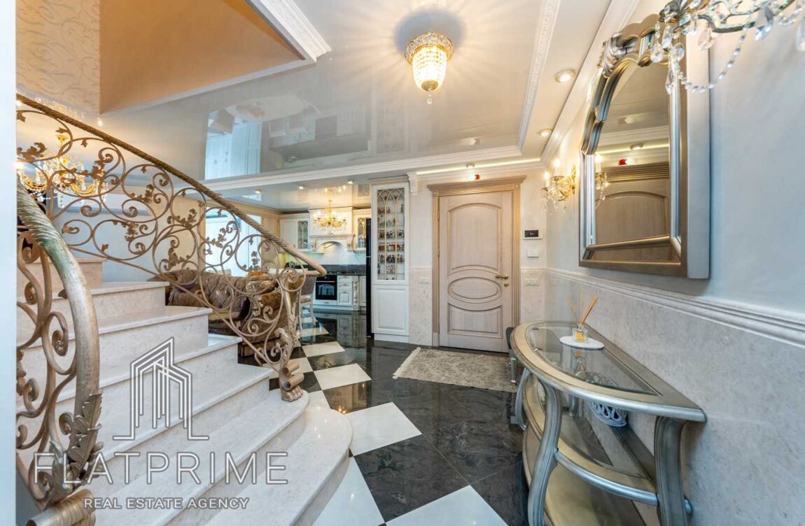 Про розкіш матеріалів, з яких була зроблена ця квартира можна розповідати годинами: сходи та підвіконня з італійського мармуру, на стінах