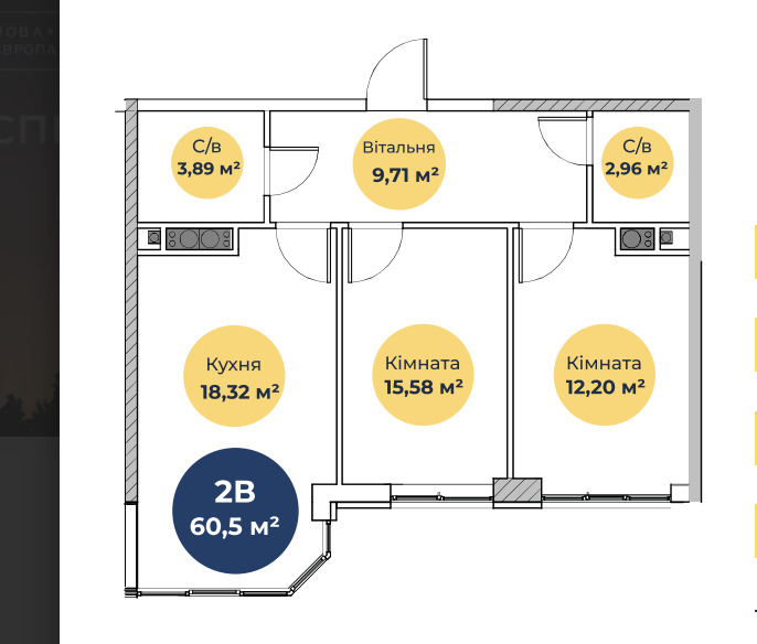 Общая площадь60.5 м²