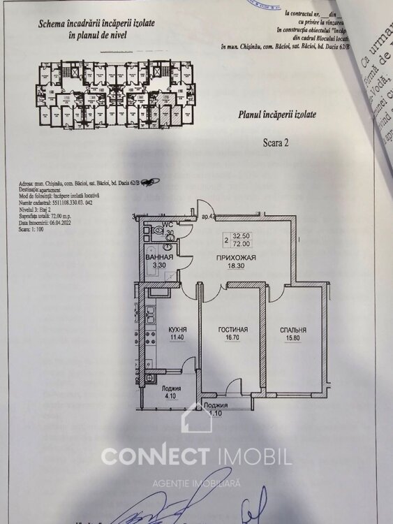 Продается квартира в Кишиневе, в районе Botanica. Находится на bd. Dacia. Жилой комплекс от застройщика Exfactor, готовится к сдачи в эксплуатацию в конце августа. Находится на финальной стадии. Общая площадь квартиры составляет 72 м² и разделена на: 2 спальни, кухню, ливинг, санузел, лоджию. Квартира находится на 2 этаже из 10. Преимущества: - Новострой - Автономное отопление - Стеклопакет - Детская площадка - Доступ к общественному транспорту - Развитая инфраструктура В пешей доступности от квартиры находятся все необходимые магазины, аптеки, поликлиники, супермаркеты. Есть несколько лицеев, садики, спортзалы и др. ATENȚIE! Acum poți procura comod în rate de la 20% rată inițială sau prin programul guvernamental Prima Casă cu doar 10% prima rată! Compania CONNECT IMOBIL vă ajută în procesul de vînzare-cumpărare a unui imobil, teren sau spațiu comercial, beneficiind de consultanță juridică în domeniul imobiliar și accesarea unui credit ipotecar. TOATE OFERTELE DISPONIBILE LE GĂSIȚI AICI https://www.connectimobil.md/sale/kvartiry