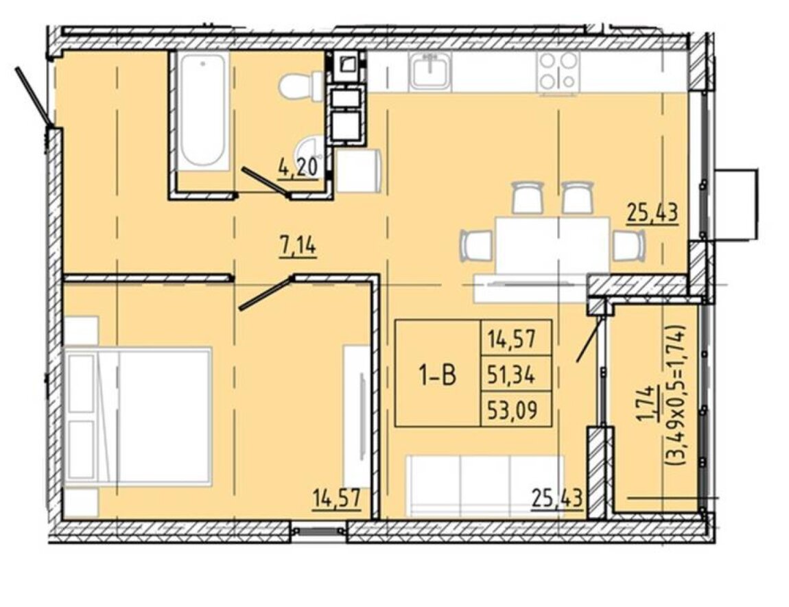 53 м²
