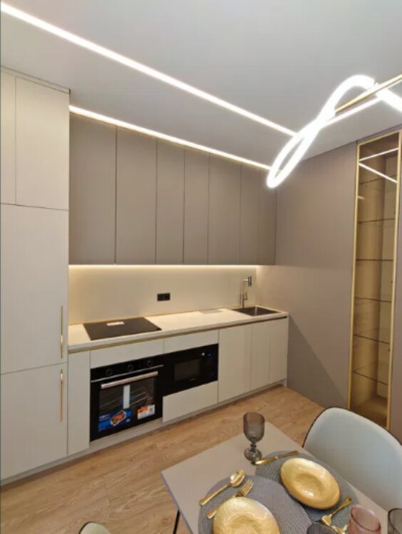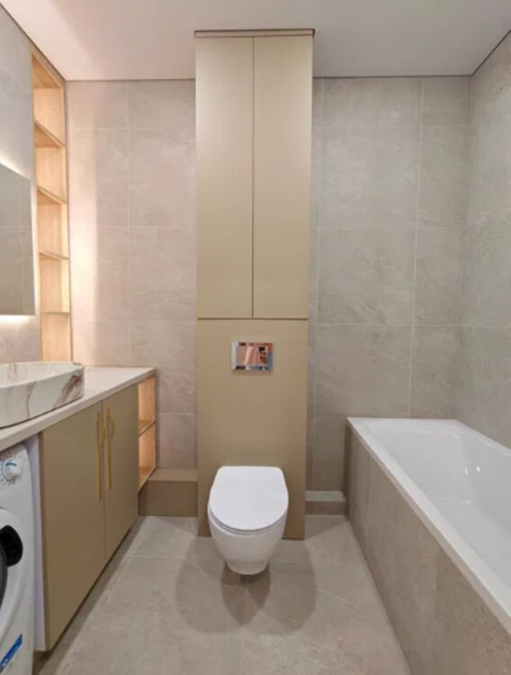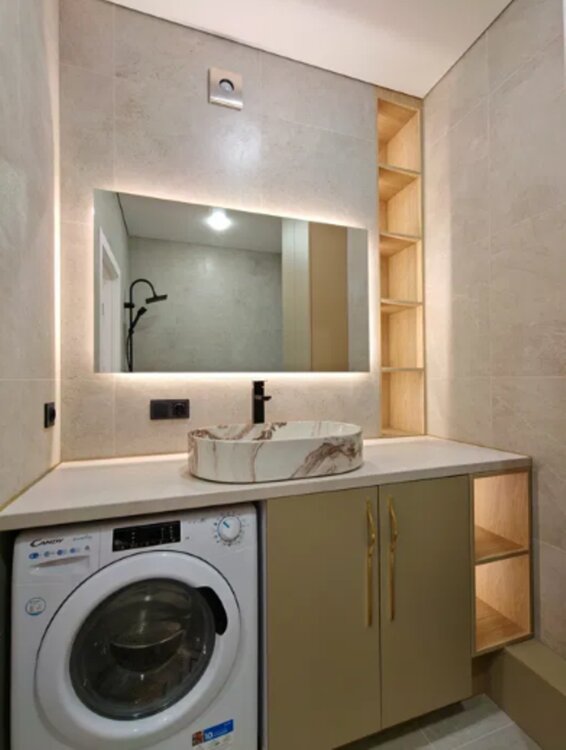 Встроенная техника, бойлер, стиральная машина, посудомойка, смарт соч. Много мест хранения.