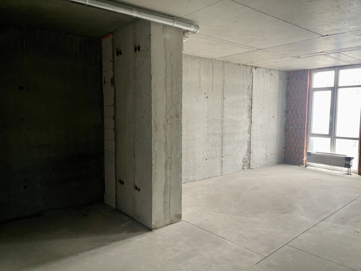 Стан квартири від будівельників. Виконано лазерне стягування підлог, проведено опалення.