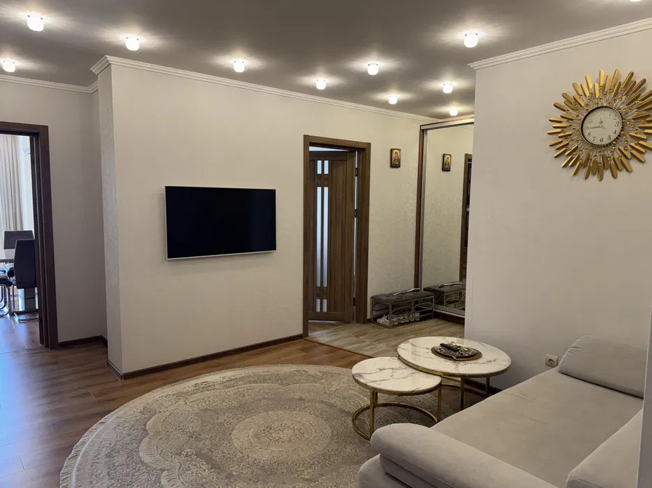Малиновского.Новый сданный дом.Квартира - 91 кв.мКухня - 16 кв.м.Две раздельные комнаты.Евроремонт.Остается мебель и техника.Гардеробная.Паркинг.Два балкона. Юго-восточная сторона. Возможна продажа по программе. ID 15774