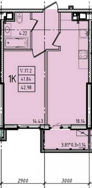 Загальна площа 42,98 м². Балкон 3.81 м ².
