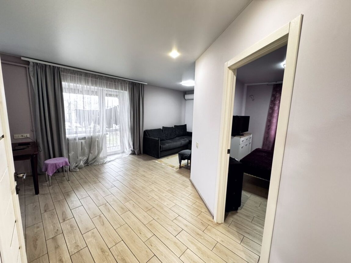 Площадь 46м2, спланирована как просторная кухня - гостиная (21м2) и отдельная уютная спальня.