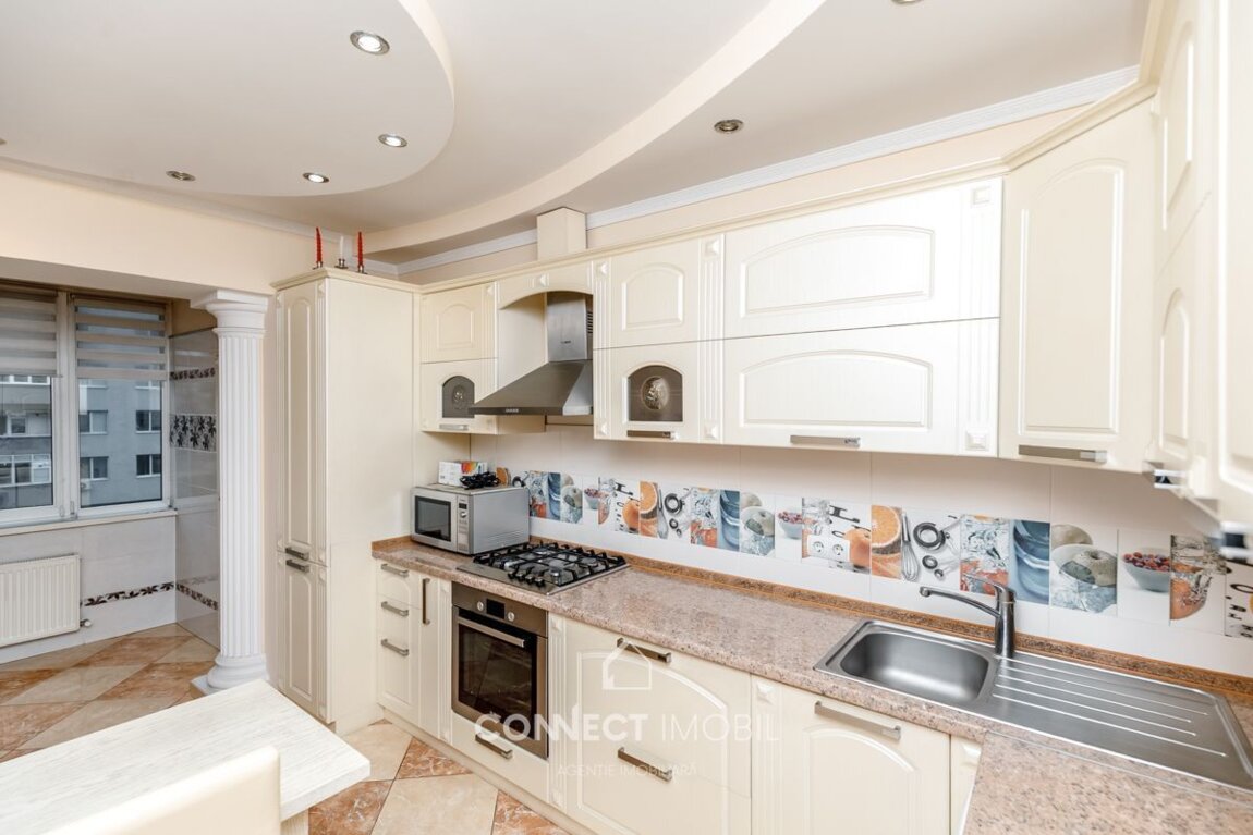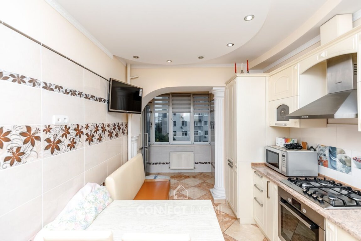 Продается 2-комнатная квартира с евроремонтом площадью 80 м2, расположенная в новом жилом комплексе в самом центре Кишинева на улице Николае Анестиаде. Квартира располагается на 4-м этаже из 11 и находится в шаговой доступности от торговых центров UNIC, GRAND HALL, ATRIUM. Планировка: 2 раздельные спальни, прихожая, кухня, 2 санитарных блока, балкон закрытого типа. Преимущества: - квартира расположена в центре Кишинева, в престижном и тихом районе (вторая линия домов) с высокоразвитой инфраструктурой; - комплекс построен по современным европейским стандартам; - ремонт высокого качества; - квартира полностью меблирована и оснащена новой бытовой техникой BOSCH; - качественная мебель, изготовленная по заказу; - современные телевизоры в каждой комнате; - автономное отопление, котел производства Италия; - кухня, выполненная по заказу с встроенной техникой; - квартира расположена в середине дома, светлая и солнечная; - удобная планировка – все комнаты раздельные; - качественный паркет из редких пород дерева; - квартира имеет звукоизоляцию, соседей не слышно; - качественная декоративная отделка стен; - система кондиционирования воздуха; - теплые полы в кухне, санузлах и прихожей; - 2 санитарных блока; - высококачественные энергосберегающие 5-камерные термопласт-окна; - жилой комплекс располагает собственной инфраструктурой – первый этаж заняты коммерческими помещениями; - двор закрытого типа с круглосуточным видеонаблюдением; - зона для отдыха жильцов и детская площадка во ...