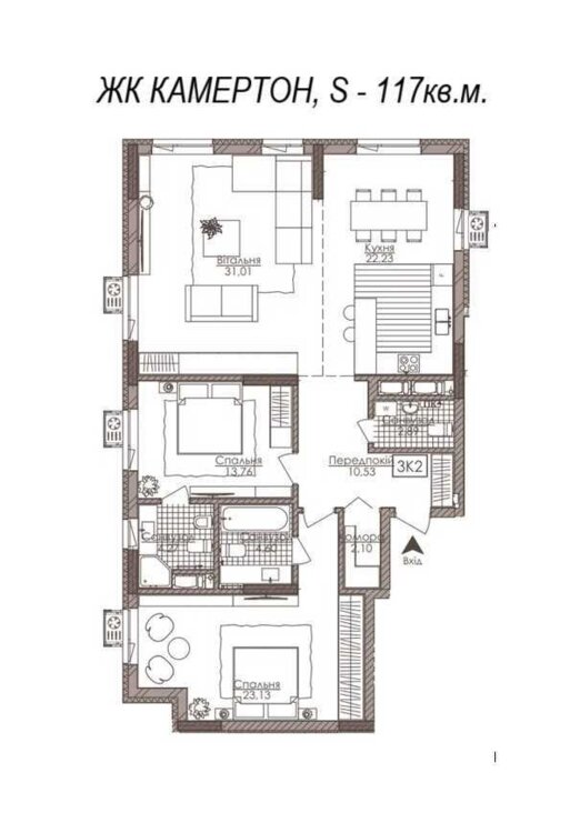 ЗАГАЛЬНА площа - 117кв.м. Н -3м