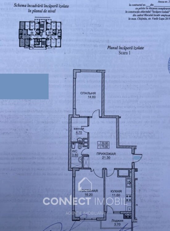 Spre vânzare apartament cu două camere și living, situat în sectorul Buiucani, str. Vasile Lupu. Imobilul este situat la etajul 12 din 14, cu o suprafața de 76 m2. Dezvoltator ExFactor Facilitati: * Variantă albă; * Parcare subterană; * Geamuri termopane; * Incălzire autonomă; * Teren de joaca; În apropiere se află: Bancă, Farmacie, Grădiniță, Piață, Școală, Supermarket, Parc. Compania CONNECT IMOBIL vă ajută în procesul de vînzare-cumpărare a unui imobil, teren sau spațiu comercial, beneficiind de consultanță juridică în domeniul imobiliar și accesarea unui credit ipotecar. TOATE OFERTELE DISPONIBILE LE GĂSIȚI AICI: https://connectimobil.md/